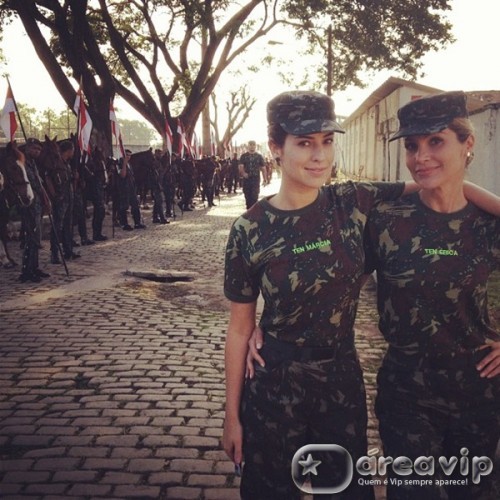 Fernanda Paes Leme e Flávia Alessandra posaram fardadas nos bastidores das gravações de “Salve Jorge”, próxima trama das 21h da TV Globo. A foto foi postada no Instagram de Flávia.