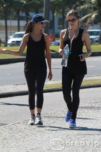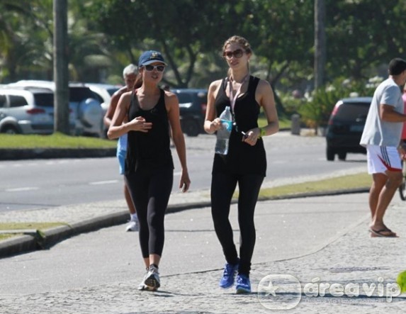 No final da manhã desta terça-feira (14), a modelo e a atriz protagonizaram cena de amizade após finalizarem atividades matinais.