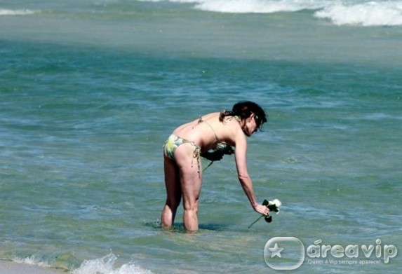 Christiane Torloni esteve na quinta (2), na praia da Barra da Tijuca, no Rio de Janeiro. A atriz jogou rosas brancas no mar, para celebrar o dia de Iemanjá.