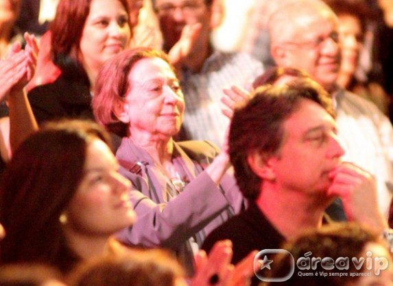 Fernanda Montenegro prestigiou Tiago Abravanel na peça ‘Tim Maia – Vale Tudo’, no Rio, na noite de quarta (23). O ator Eduardo Galvão também assistiu ao musical.