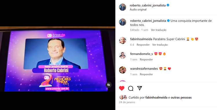 Nos comentários, Daniela Beyruti reagiu: “Muito bom“, disse ela. “Ontem, hoje e sempre sucesso!!!“, comentou Ana Paula Renault. “O mesmo garoto de sempre“, reagiu Liminha. “Tem que ser um baita comunicador pra ficar a frente de um programa por 7horas seguidas, não é a toa que é minha referência @celsoportiolli“, comentou outro.