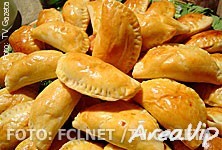 Abra a massa com auxílio do rolo. Modele os pasteizinhos com um cortador redondo. Empregue o recheio. Feche unindo as bordas. Aperte com a ponta de um garfo.