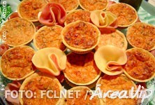 A seguir, distribua porções da massa em forminhas (tipo empada). Empregue o recheio. Acomode-as em uma assadeira retangular. Leve ao forno pré-aquecido (200°C) por 20 a 25 minutos.