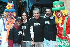 Ana Paula Padrão, Carlos Nascimento, Joyce Ribeiro e o diretor nacional de jornalismo, Luiz Gonzaga Mineiro, deixaram de lado as roupas sociais e vestiram a camiseta comemorativa durante a festa. Enquanto Ratinho, Celso Portiolli, César Filho e Canarinho batiam um papo animado no hall do restaurante, Carlos Alberto de Nóbrega, Regina Volpato, Liminha, Analice Nicolau e Lígia Mendes se divertiam com os personagens da turma do Chaves. Carla Cecarello apareceu minutos depois e encontrou Adriane Galisteu, que posava para fotos com o palhaço Bozo. A emoção tomou conta de todos quando Ruth Ronci chegou e se deparou com uma foto sua em tamanho real na entrada do restaurante. No decorrer do dia, mais ações, sorteios de prêmios e grandes surpresas.