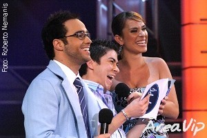 Bianca Rinaldi e o apresentador José Miguel Viñuela