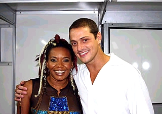 A atriz Débora Secco ficou no palco dançando, cantando e jogando beijinhos para seu amado Falcão – vocalista do Rappa – até o término do show.