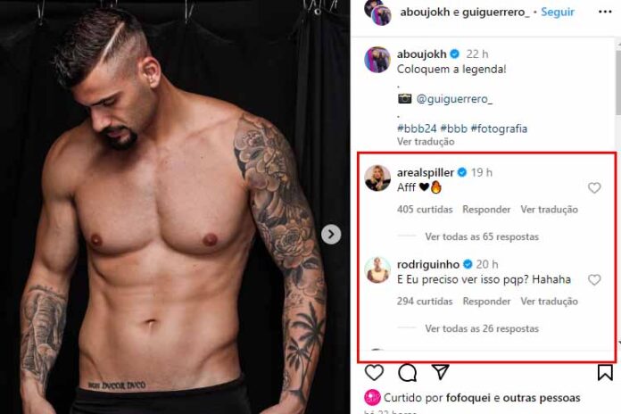 Na imagem, o rapaz surge de sunga, ganhando elogios de seus seguidores e até mesmo da atriz, que comentou um “aff” acompanhado de emojis de coração e fogo. Nizam respondeu ao comentário usando emojis de coração. O ex-BBB também recebeu resposta de outros internautas, como o ex-participante Rodriguinho.