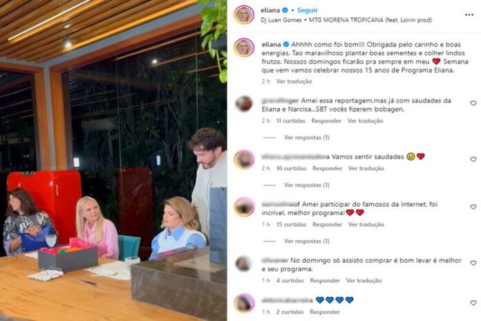 No entanto, o que chamou a atenção foram os alertas de alguns internautas em relação ao fim de seu contrato com a emissora de Silvio Santos. “Amei essa reportagem, mas já estou com saudades da Eliana e da Narcisa…SBT, vocês fizeram bobagem”, disse uma seguidora.
