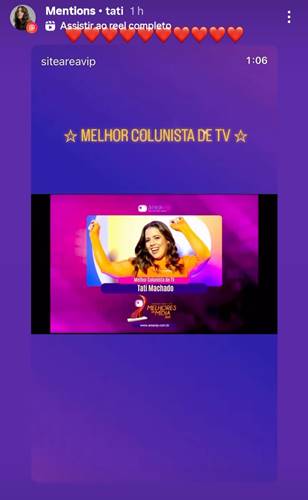 + Vitoriosa no Prêmio Área VIP, Tati Machado reverência colunista de Sonia Abrão