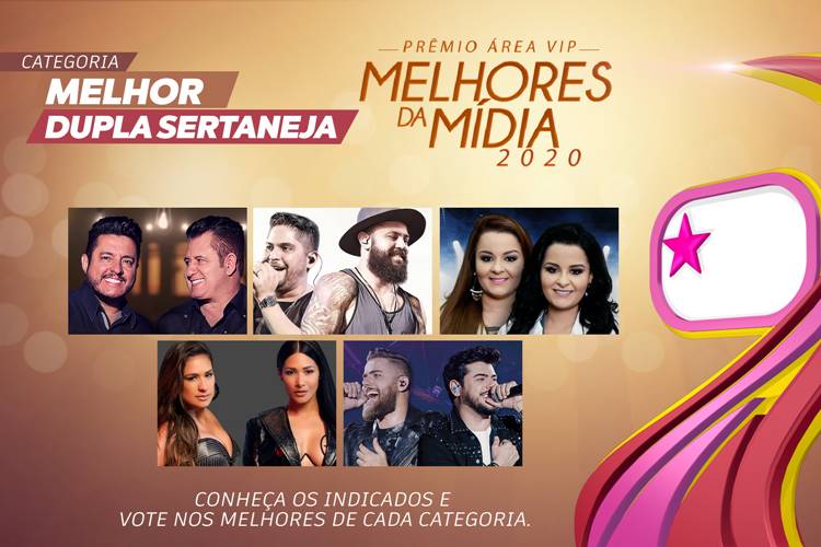 A votação do Prêmio Área VIP – Melhores da Mídia 2020 está a todo vapor. Entre as 32 categorias, que reúnem os destaques da Televisão, da Internet e Famosos do Ano, está a escolha de Melhor Dupla Sertaneja. Entre as concorrentes estão: Bruno e Marrone, Jorge e Mateus, Maiara e Maraísa, Simone e Simaria e Zé Neto e Cristiano. Na sua opinião, qual destes foi a Melhor Dupla Sertaneja de 2020? Acesse a votação e escolha a sua favorita.