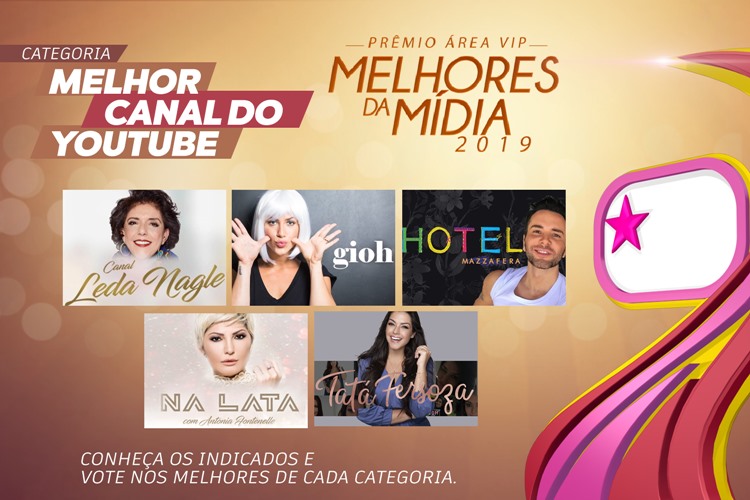 A votação do Prêmio Área VIP – Melhores da Mídia 2019 está a todo vapor. Entre as 35 categorias, que reúnem os destaques da Televisão, da Internet e Famosos do Ano, está a escolha de Melhor Canal do Youtube. Entre os concorrentes estão: Canal Leda Nagle, Gioh (Giovanna Ewbank), Hottel Mazzafera (Matheus Mazzafera), Na Lata com Antonia Fontenelle e Tatá Fersoza. Na sua opinião, qual destes foi o melhor canal do Youtube de 2019? Acesse a votação e escolha o seu favorito.
