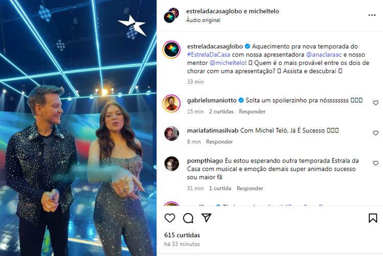 O vídeo foi publicado pelos apresentadores no perfil oficial do programa. “Aquecimento pra nova temporada do #EstrelaDaCasa com nossa apresentadora @anaclaraac e nosso mentor @micheltelo! Quem é o mais provável entre os dois de chorar com uma apresentação? 👀 Assista e descubra!”, diz a legenda.