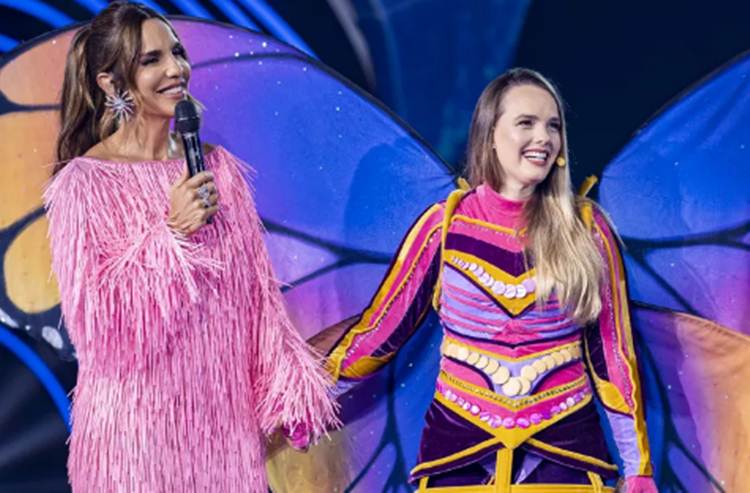 E quem estava por baixo da fantasia de Borboleta era a cantora Thaeme. A artista se despediu do palco do programa depois de se apresentar com “Mamma Mia”, clássico dos anos 1970, do grupo ABBA.