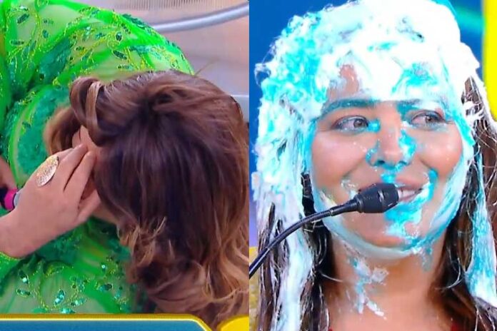 Geisy Arruda participou do “Passa ou Repassa” do programa “Domingo Legal” deste domingo (27). Durante uma das perguntas, a participante acabou errando pergunta improvável, recebendo uma tortada na cara.