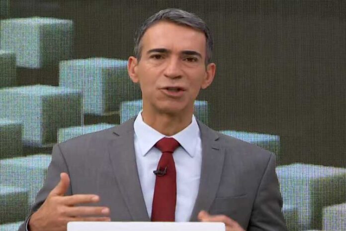 + César Tralli se comove, ao vivo na TV, ao falar sobre pessoas que passam fome: ‘Estômago vazio’