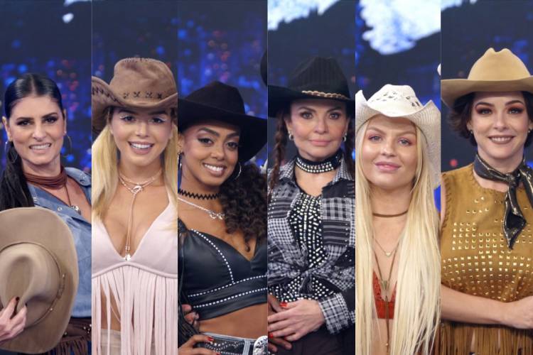 A cantora Fernanda Abreu abriu a disputa ao lado do professor Igor Maximiliano. A dupla apostou na música ‘Bate o Pé’. O look all jeans da participante ficou ainda mais completo com o chapéu, acessório indispensável para o visual. Em seguida, Giovanna e Danniel Navarro agitaram a plateia com a canção ‘Peão Apaixonado’. A atriz usou macacão rosinha com franja mais colete cheio de brilho.
