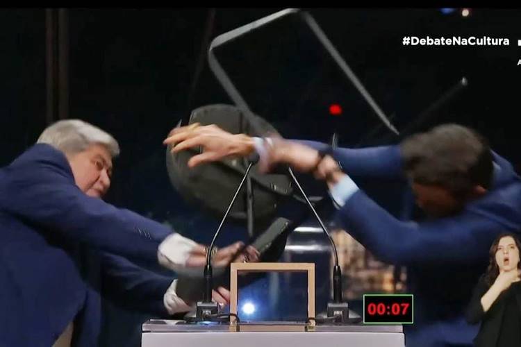 Na sequência, só se ouviu todos falando: “Não, Datena!“. Mas o candidato do PSDB aparece avançando para cima de Pablo Marçal com uma cadeira atigindo Marçal que tenta se defender. O debate foi para o intervalo.