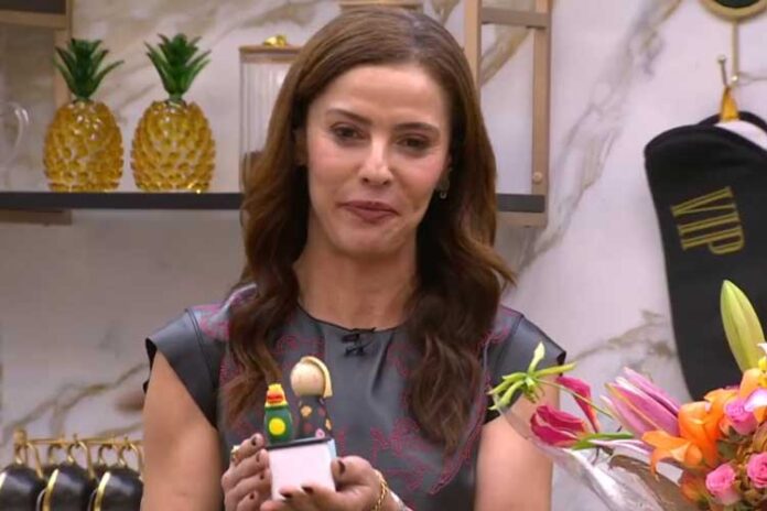“Eles vão ter o prazer de cozinhar com vocês. Nossa cozinha dourada é em homenagem ao diretor, Rodrigo Dourado”, disse Angélica mostrando uma miniatura de Ana Maria Braga e Louro José.