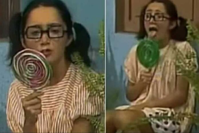 A filha do Seu Madruga aparece com um pirulito branco e vermelho. É neste momento que acontece um erro de continuidade, onde o doce simplesmente muda de cor após Chaves atingir Nhonho com a bola. O pirulito aparece verde na cena seguinte.