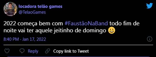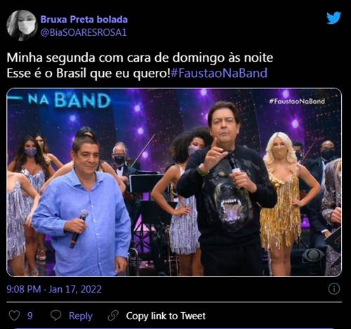 Os fãs não pouparam elogios. “2022 começa bem com Faustão na Band todo fim de noite vai ter aquele jeitinho de domingo”, escreveu um. “Minha segunda com cara de domingo à noite. Esse é o Brasil que eu quero”, disse outra. “Tem domingo nessa segunda-feira”, brincou mais um.