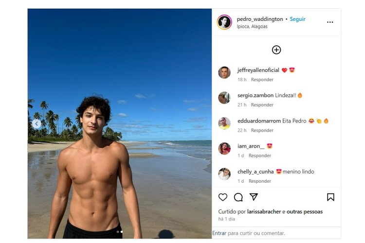 Aos 26 anos, Pedro Waddington é ator e também faz sucesso nas redes sociais. Recentemente, o rapaz postou uma foto sem camisa e foi muito elogiado por seus seguidores no Instagram.