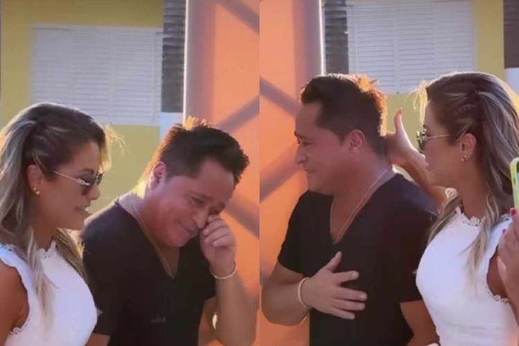 Em bate-papo com a equipe do “Fofocalizando”, programa exibido pelo SBT, o jovem relembrou o momento em que o cantor ficou extremamente emocionado ao ser surpreendido com um show de seu ídolo, Amado Batista.