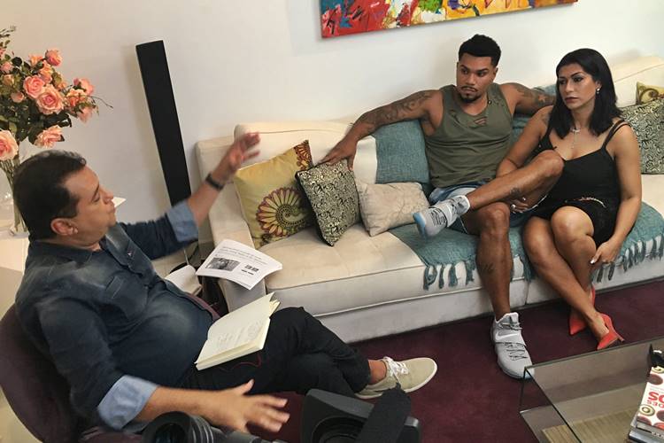 Geraldo vai entrevistar o cantor Naldo Benny e a Ellen Cardoso, a Mulher Moranguinho. Após denúncia de agressão, o casal reatou recentemente.