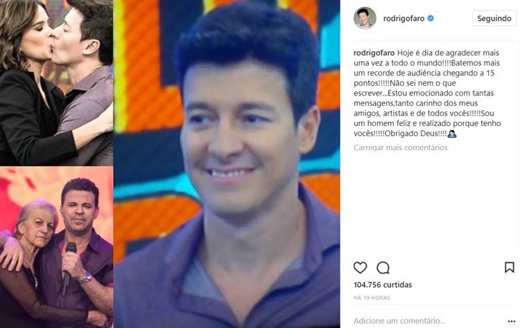 Rodrigo Faro usou seu Instagram, para comemorar a audiência de seu programa ‘Hora do Faro‘, exibido pela Record TV aos domingos.