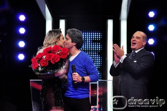 Depois dos elogios à amada, João Kléber entrou no embalo da plateia e, ao som do coro “beija, beija, beija”, lascou um beijo em Ester.