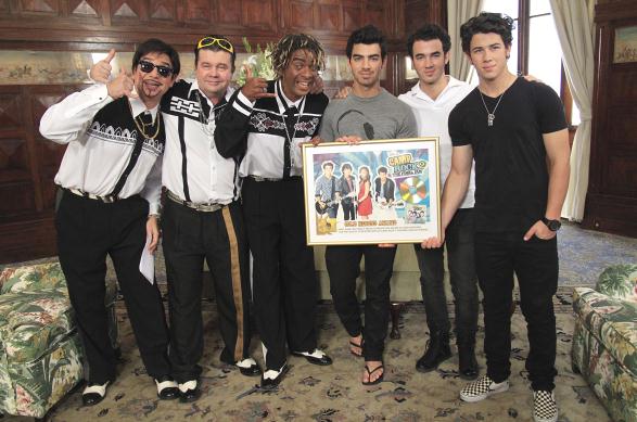 Durante a conversa, cheia de mal-entendidos por conta de uma mistura hilária de idiomas, os Jonas Brothers recebem o disco de ouro das mãos do ‘Sambabaca Brothers’, que acabam achando que o prêmio é deles. “Eles foram muito atenciosos. E, agora, com esta força dos Sambabaca, tenho certeza que a carreira dos Jonas Brothers vai decolar”, brinca Hélio de La Peña.
