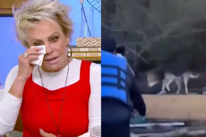 A apresentadora Ana Maria Braga não se conteve diante do resgate de animais no RS. Ao ver um cachorrinho sendo resgatado por uma veterinária e agarrado em sua perna, ela afirmou que não estava conseguindo segurar as lágrimas.