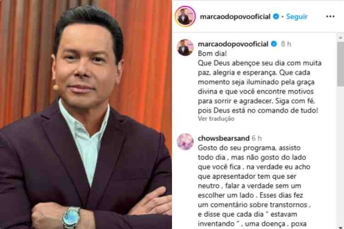 Antes de entrar ao vivo no programa, Marcão do Povo fez uma publicação em seu perfil no Instagram, onde desejou um bom dia aos seus seguidores: “Bom dia! Que Deus abençoe seu dia com muita paz, alegria e esperança. Que cada momento seja iluminado pela graça divina e que você encontre motivos para sorrir e agradecer. Siga com fé, pois Deus está no comando de tudo!”, escreveu ele.