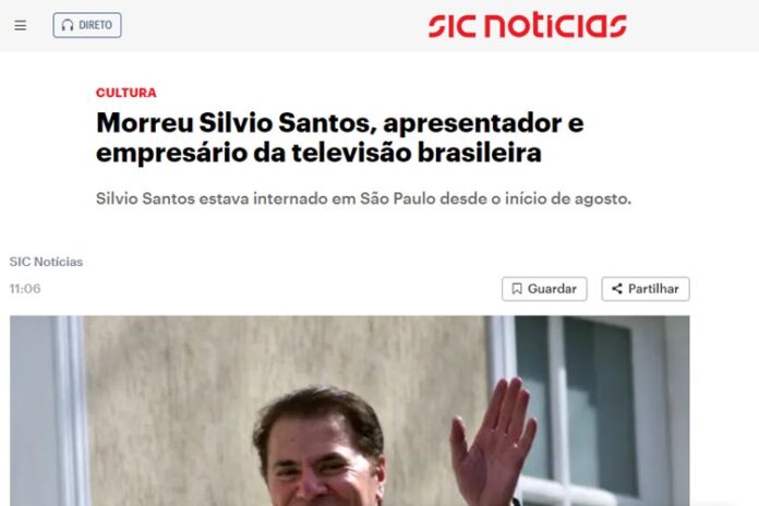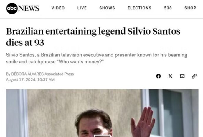 A morte do maior nome da comunicação do Brasil, Silvio Santos, pegou não só o povo brasileiro de surpresa, mas como a imprensa ao redor do mundo. Neste sábado, 17 de agosto, dois dias antes do SBT completar seus 43 anos de existência, o Rei da TV veio à óbito. Diante disso, a imprensa mundial passou a destacar a morte do magnata, apresentador e Rei da TV brasileira.