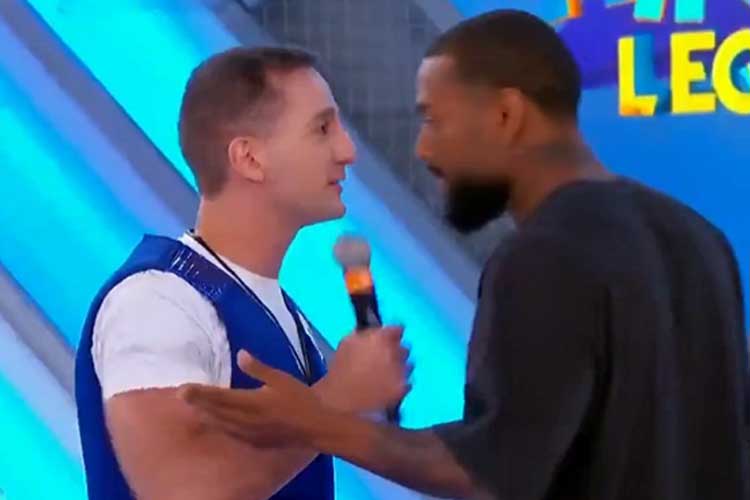 Luiz Otávio Mesquita chamou o cantor de “covarde” e o clima esquentou. “Covarde. Só sabe empurrar”, disparou. “Você veio para brincar”, lembrou Portiolli, tentando amenizar a situação. Tudo se iniciou após o apresentador falar sobre a luta entre MC Gui e Nego do Borel.
