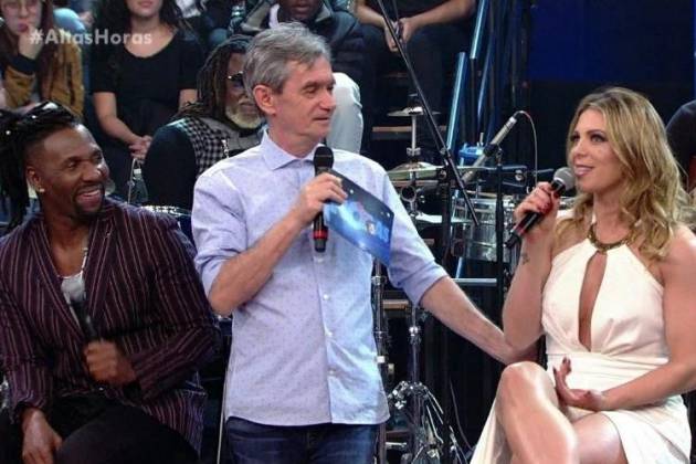Entre os convidados do “Altas Horas“, exibido neste sábado (04), estava o grupo musical, “É o Tchan”, Beto Jamaica e Compadre Washington nos vocais, e Sheila Mello na dança.