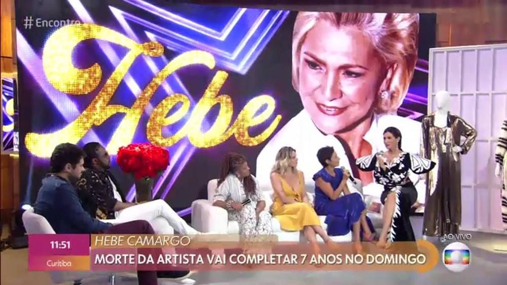 Ela aproveitou para reproduzir um “momento Hebe” com seus convidados, e no palco montou um cenário especial com vários looks de Hebe e também um sofá branco, marca registrada da apresentadora.