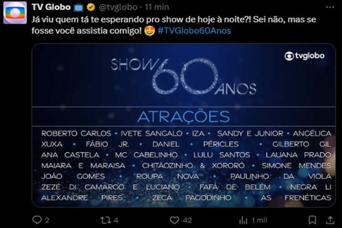 Mais de 400 artistas farão parte do especial de 60 anos da Globo
