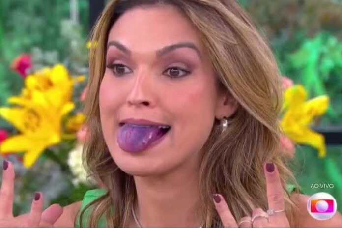 Após experimentar um chocolate e beber um drink, Fabrício notou algo estranho e fez um alerta a Talitha durante o intervalo da atração. “Eu falei que devia ser o chocolate. Então, de repente…”, disse a apresentadora, com a língua roxa.
