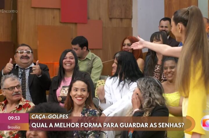 Dessa forma, enquanto comentava sobre como as pessoas conseguiam guardar suas senhas, seja em caderno ou memória, Patrícia Poeta foi até a sua plateia questioná-los sobre o assunto e, ao conversar com um senhor, ela logo ficou surpresa, disparando: “O SBT aqui na plateia gente. Aqui ó, o Seu Barriga, Seu Barriga“, declarou ela, levando o cidadão a fazer joinha com as mãos e a plateia caindo na risada.