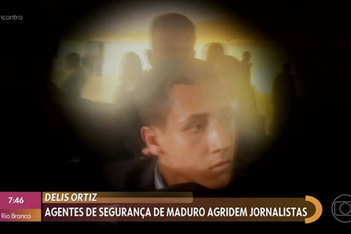 “Ela é uma colega muito querida por sinal, já trabalhei com ela no Jornal Nacional, Delis Ortiz. De acordo com as testemunhas o autor da agressão é esse agente“, disse ela, mostrando a imagem do segurança do ditador da Venezuela ao vivo.