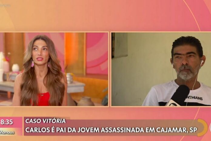 Carlos parecia ainda muito abalado enquanto era entrevistado, acompanhado do repórter Mateus Luz, que havia acompanhado o caso desde o início das investigações. Durante a conversa, o pai de Vitória contou sobre os últimos dias de sofrimento, lamentando a perda da filha e a situação difícil que enfrentava, marcada por culpa e dor. Ao longo da entrevista, Patrícia o instigou a falar sobre as investigações até que, de forma abrupta, ela revelou que a polícia já teria identificado o assassino de Vitória, sugerindo um crime passional.