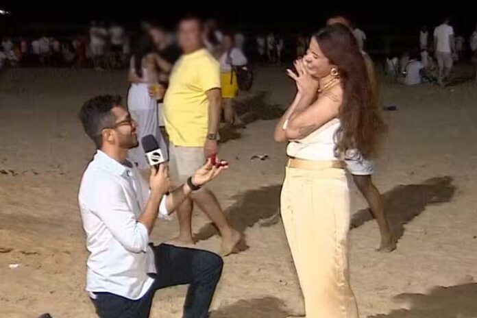 Durante cobertura do Réveillon, realizada pela TV Sergipe, afiliada da Globo, o repórter Antônio Cardoso resolveu surpreender a namorada, Larissa Natália Santos, com um pedido ao vivo.