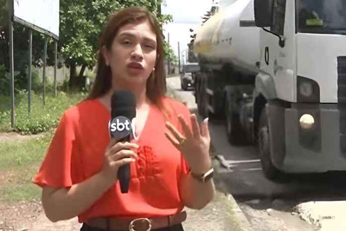 A repórter Pâmela Marinho, da TV Jangadeiro, afiliada do SBT, sentiu na pele um dos transtornos causados por um buraco na Avenida Silas Munguba, em Fortaleza. Enquanto realizava uma reportagem, ela acabou levando um ‘banho de lama’ após um caminhão passar pelo local sem reparos.