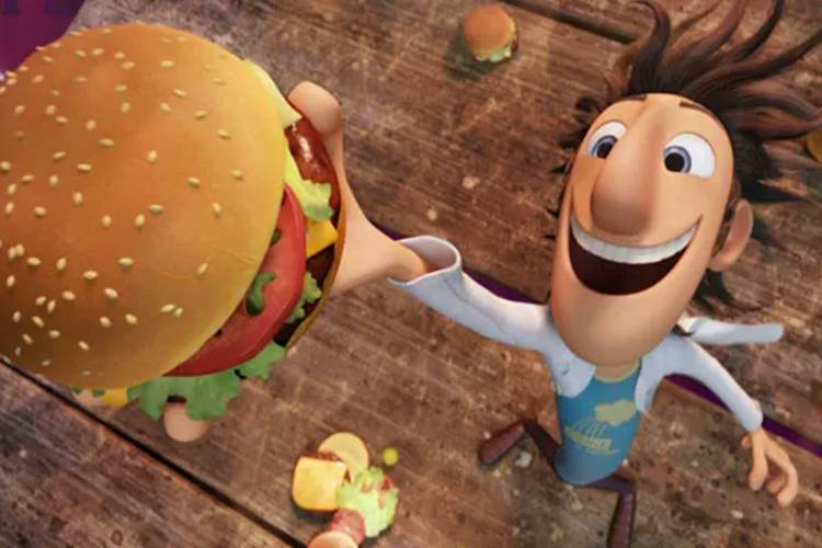 Sinopse: Flint Lockwood é um jovem cientista que cria uma máquina que transforma água em comida, só que precisa de bastante eletricidade para colocá-la em funcionamento. Ao tentar usar a energia da geradora local, ele perde o controle da invenção e ela ruma para o céu. Ele acredita ter perdido a máquina, mas repentinamente começa a chover hambúrgueres na cidade.