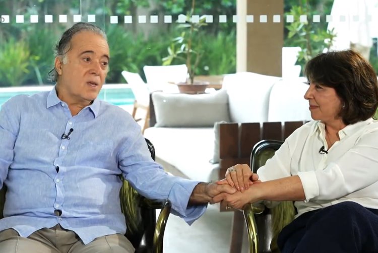 Durante a entrevista ao programa dominical da TV Globo, Tony contou que se sentiu mal e foi para o hospital, confessando que graças a esposa foi socorrido a tempo. Adiante, ela entrou na entrevista e comentou sobre o companheiro de longa data, explicando sua paixão pelo marido, deixando-o emocionado e com os olhinhos cheios d’água.