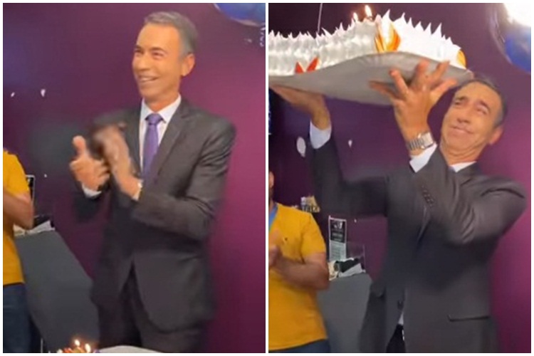 Para celebrar a data, os colegas de trabalho fizeram uma festinha surpresa para o apresentador, que atualmente está à frente do Jornal Hoje, com direito a bolo e ‘parabéns pra você’.